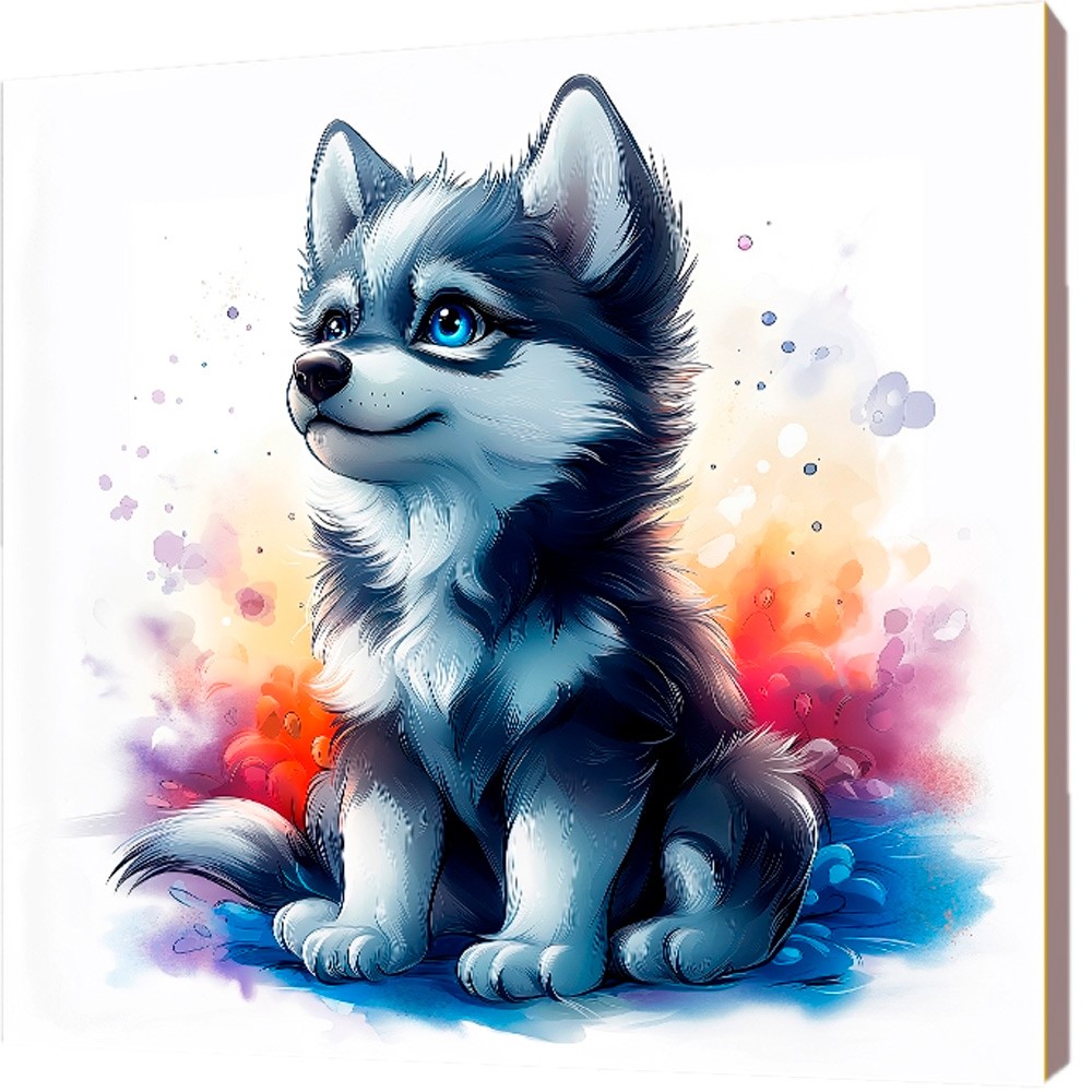 Набор для творчества Роспись по холсту с красками по номерам 20х20 см Красочный малыш хаски Х-0734