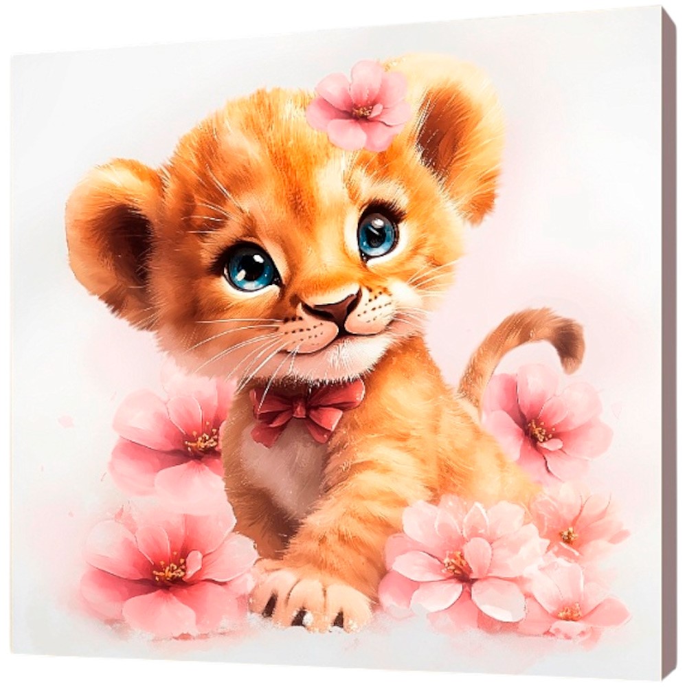 Набор для творчества Роспись по холсту с красками по номерам 20х20 см Львёнок в цветах Х-0741