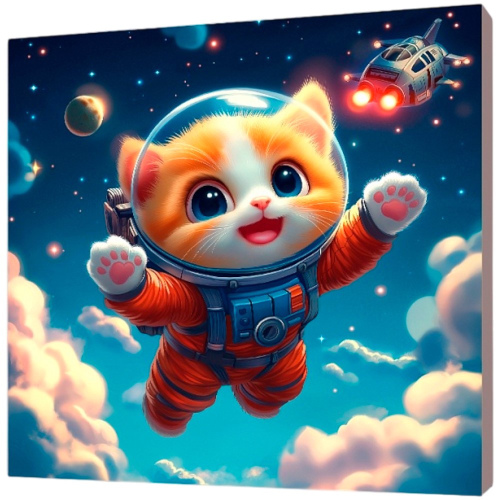 Набор для творчества Роспись по холсту с красками по номерам 20х20 см Рыжий котик-космонавт Х-0749