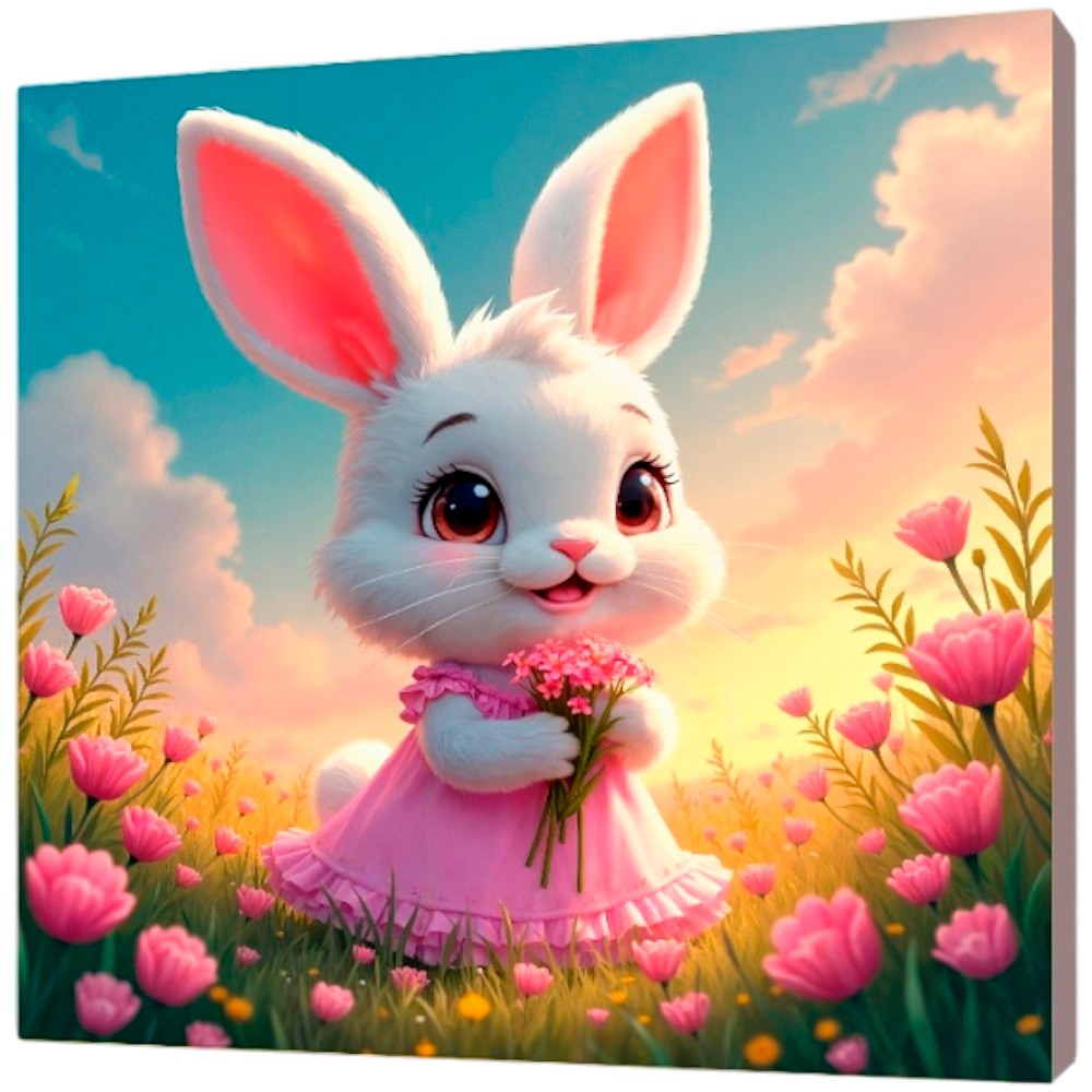 Набор для творчества Роспись по холсту с красками по номерам 20х20 см Зайка в поле с цветами Х-0743