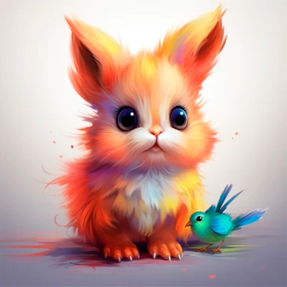Набор для творчества Роспись по холсту с красками по номерам 30х30 см Малыши-животные 20цв Крольчонок и птичка Х-6314