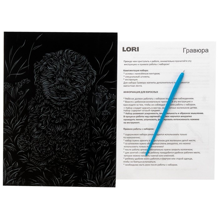 В набор входит картинка и стек для создания гравюры.