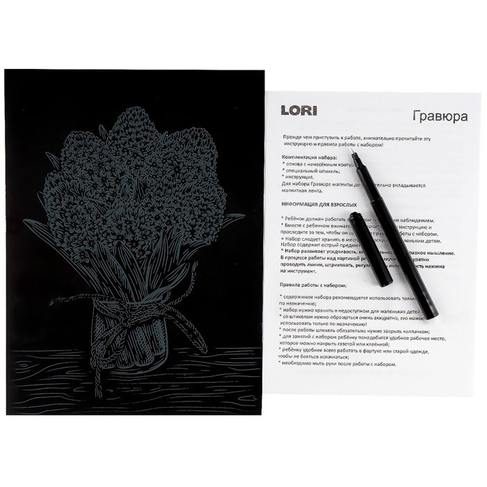 В набор входит картинка и стек для создания гравюры.