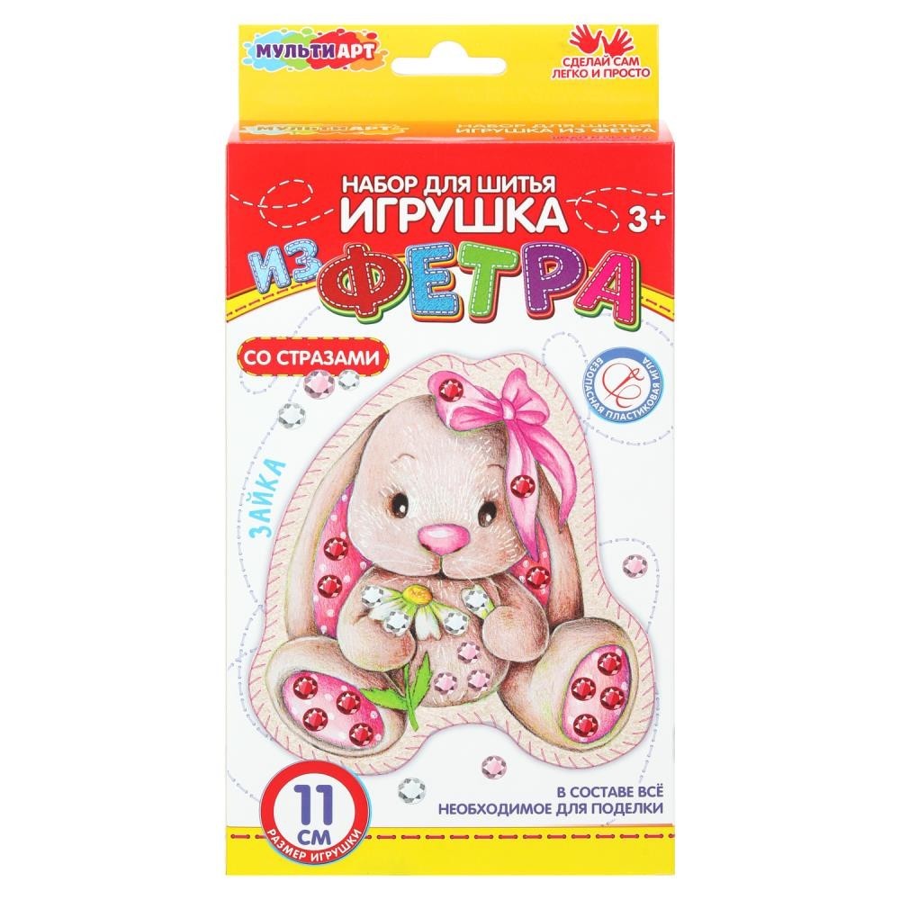 Комплектация: пластиковая игла - 1 шт., выкройка из фетра, нитки, наполнитель, стразы, инструкция