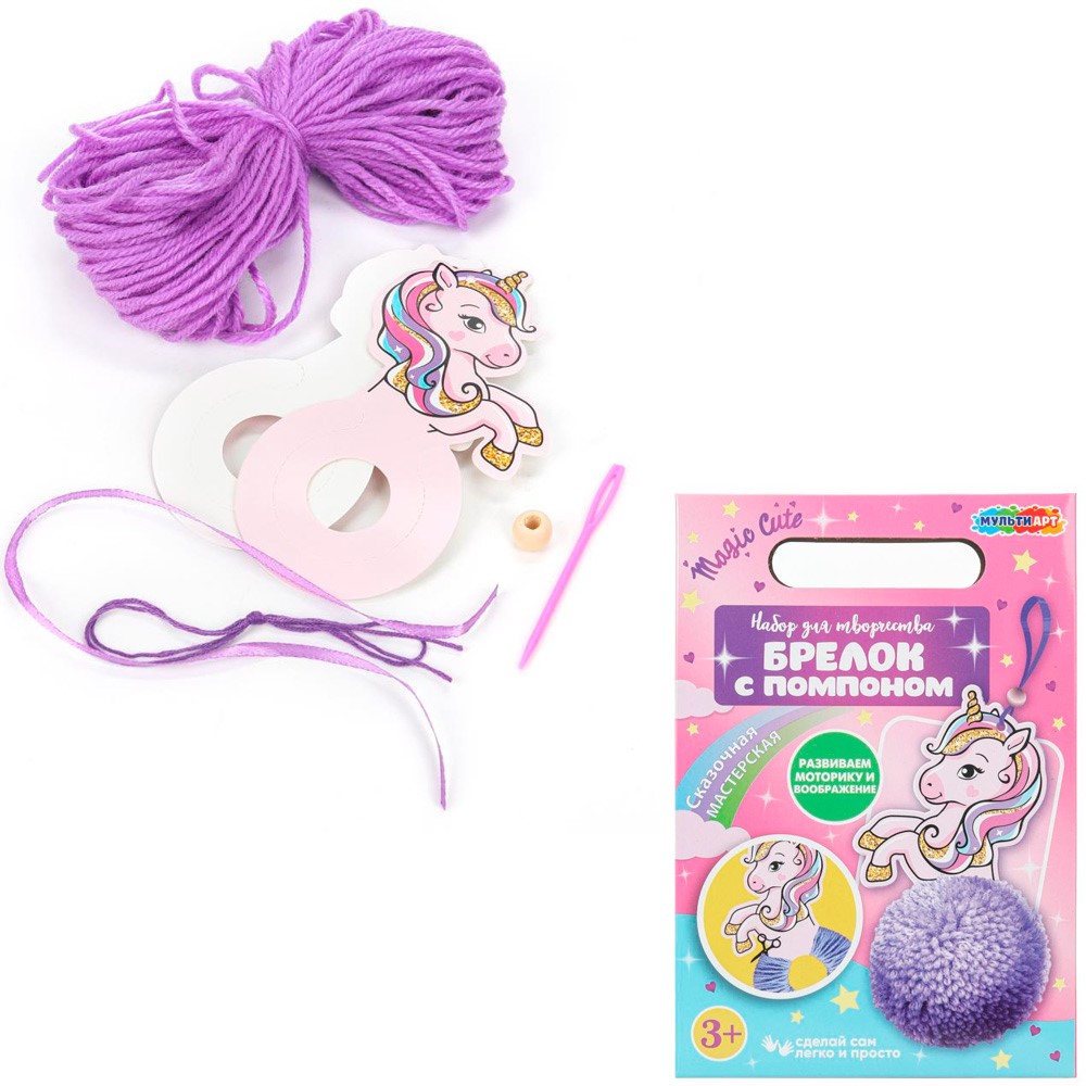 Набор для творчества Создай Брелок с помпоном Единорожка МУЛЬТИ АРТ KEYPOMPOM-122852