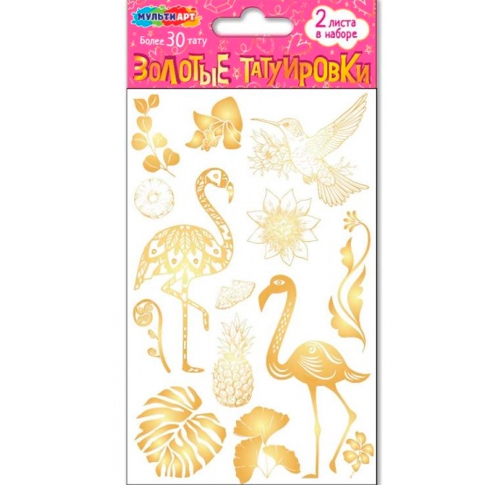 Набор для творчества Тату золотистые, 2 листа тропическая вечеринка Мульти арт TATTOO-GOLD-126690