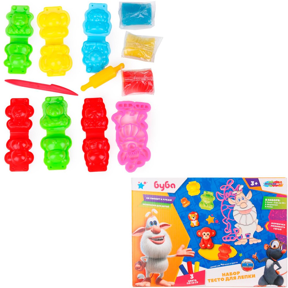 - стека, скалка, формочки (в том числе в виде Бубы), 3 пакетика теста в комплекте