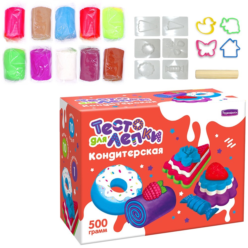 Набор для творчества Тесто для лепки "Кондитерская фабрика", тесто 500гр, формы, скалка П103