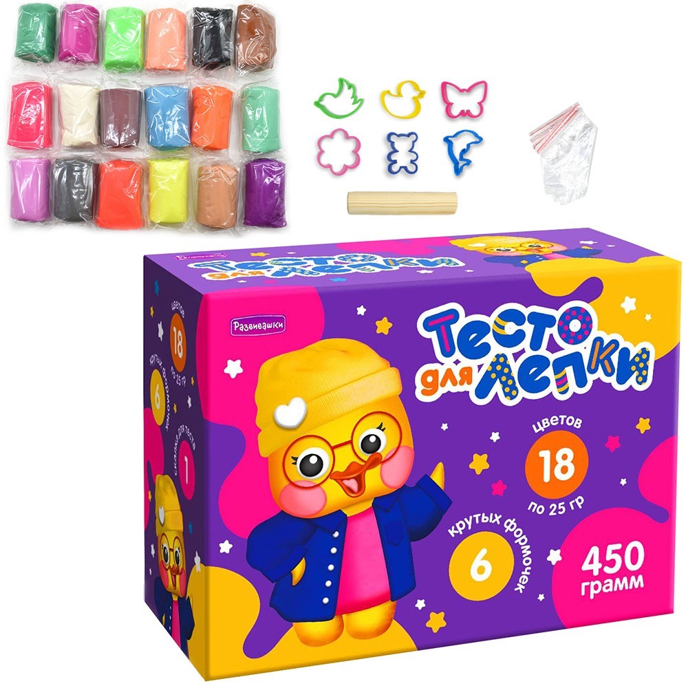 Набор для творчества Тесто для лепки, тесто 450 гр, 18 цветов, 6 форм, скалка П117