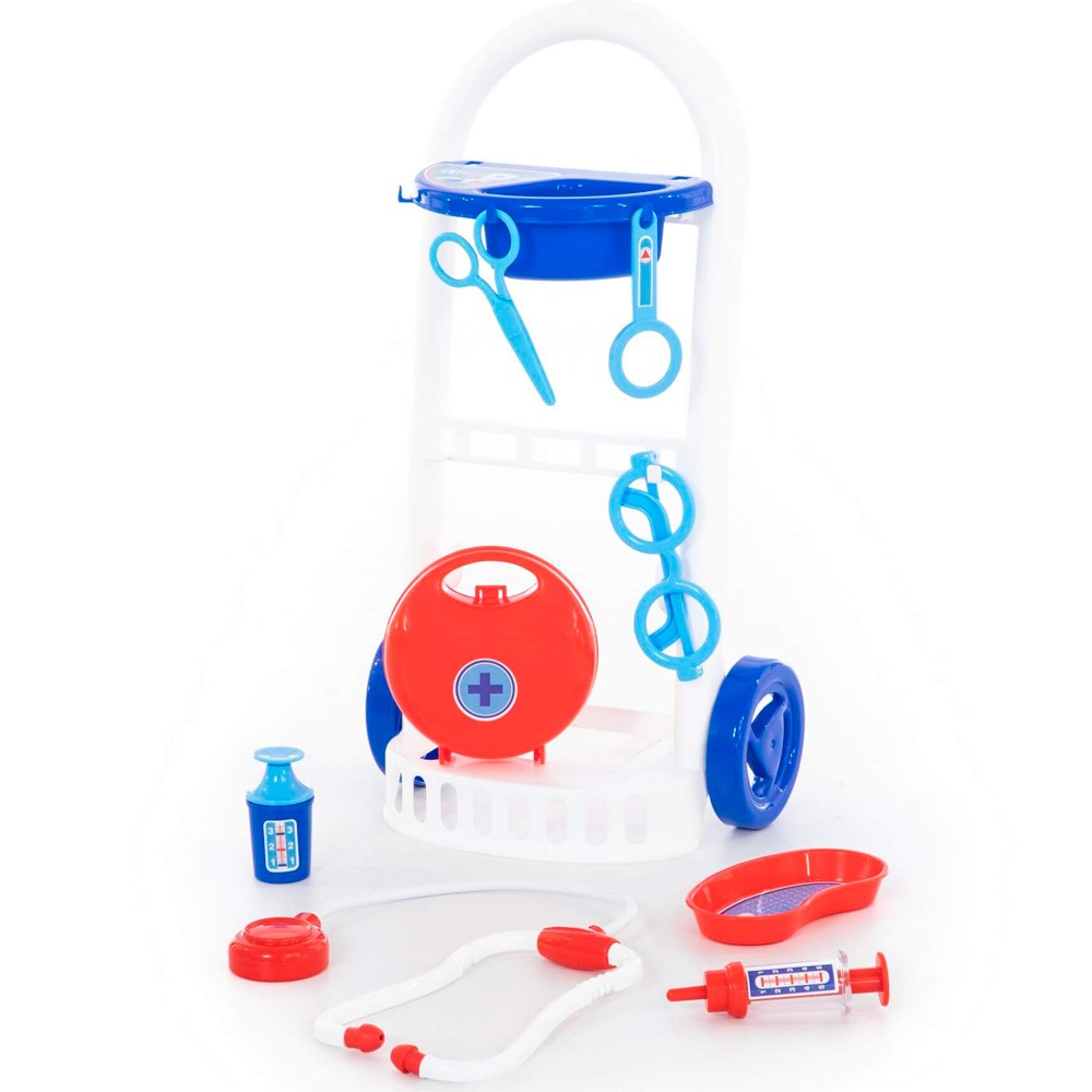Набор инструментов доктора на стойке станет отличным дополнением для игры в больницу. В комплект входят 8 предметов: стетоскоп, очки, шприц, лоток, ножницы, мензурка, чемоданчик, прибор для проверки зрения, которые удобно расположить на тележке-столике. Играя, малыш примерит на себя взрослую профессию, разовьет сюжетно-образное мышление и навыки мелкой моторики.