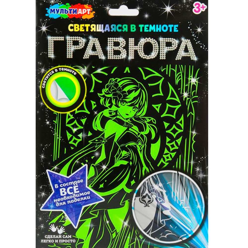 Набор Для Творчества Гравюра 18*24 см светящаяся в темноте Геншин МУЛЬТИ АРТ SCRGLOW-119819
