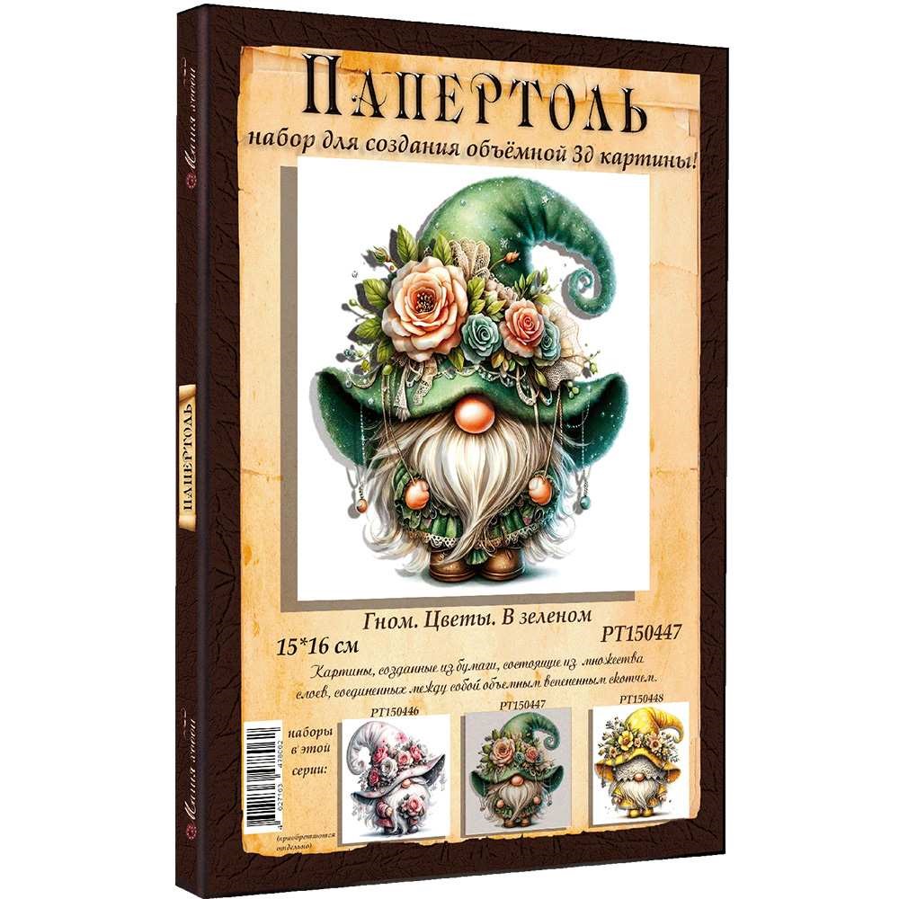 Набор ДТ Папертоль Гном цветы. В зеленом 15*16см. РТ150447