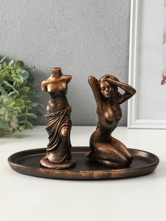 Набор фигур "Богини" на подносе, высота 16 см, цвет винтажная бронза