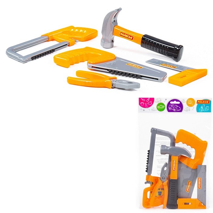 Комплектация: молоток – 1 шт., угольник с линейкой – 1 шт., пассатижи – 1 шт., пила (лучковую и ножовку) – 2 шт.