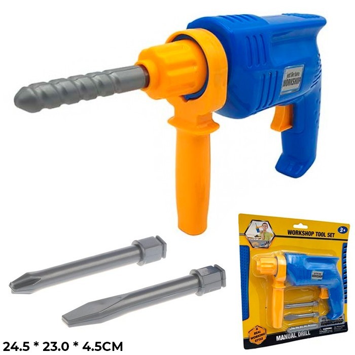 Функциональная дрель с насадками привлекает внимание не только своим ярким внешним видом, но и практичностью. Она имеет лаконичный дизайн, хорошо детализирована, все элементы имитируют настоящие, отличаются точной проработкой деталей. С ней малыш почувствует себя настоящим строителем и сможет отремонтировать игрушечную технику или построить домик.