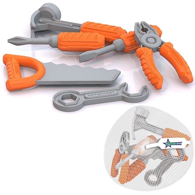 Комплектация: плоскогубцы, отвертка крестовая, отвертка с плоским шлицем, молоток, гаечный ключ, пила