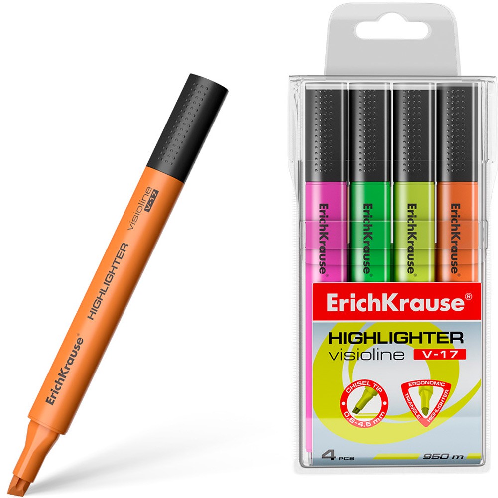 Набор из 4 текстмаркеров Neon Visioline V-17 56704 /Erich Krause/