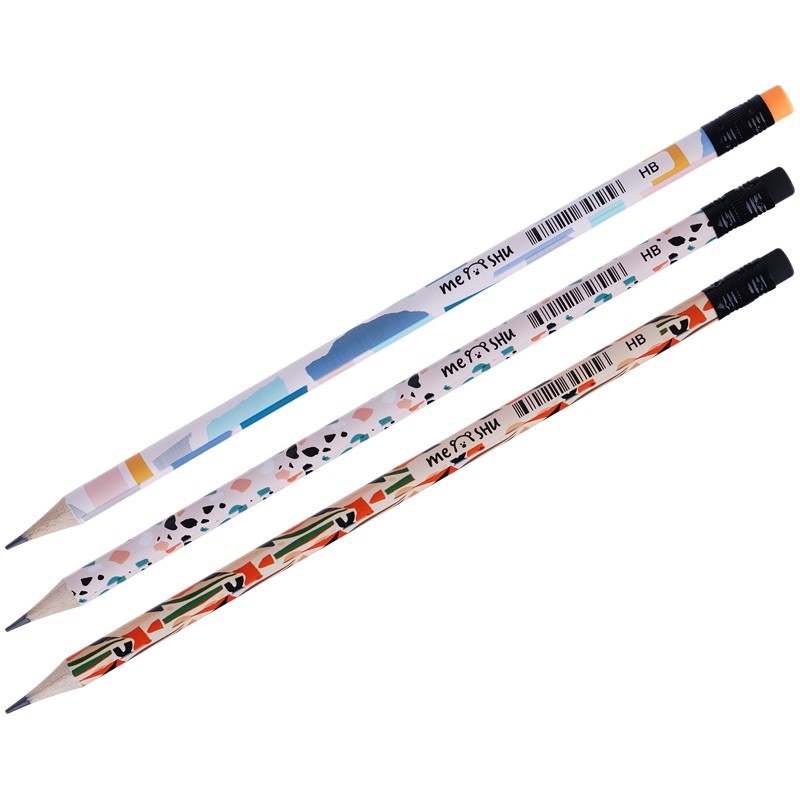 Набор карандашей ч/г MESHU "Pastel" 3шт., HB, заточен.,с печатью,с ластиком 311356