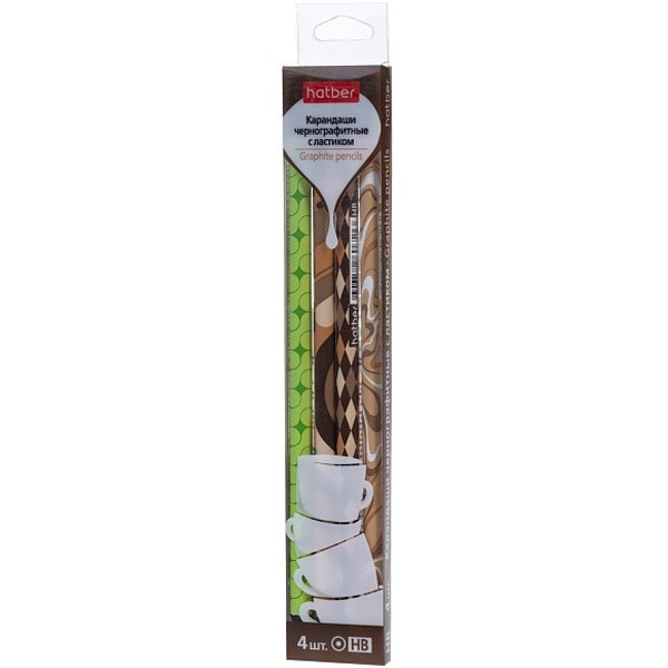 Набор карандашей ч/гр Coffee Story 4шт. "HB" с ластиком 092622