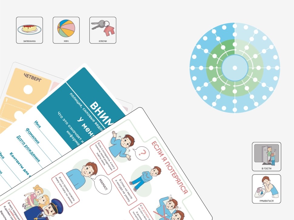 Набор карточек «Все включено» объединяет в себе все карточки из наборов «Ученик», «Рутинки» и «Динамика» и дополнен визуализацией «Если я потерялся».