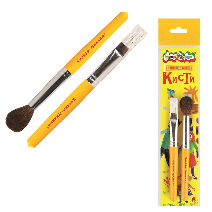 Набор кистей 2 шт. Пони №9 круглая, Щетина №14 плоская 3+ КМКМ02 Каляка-Маляка