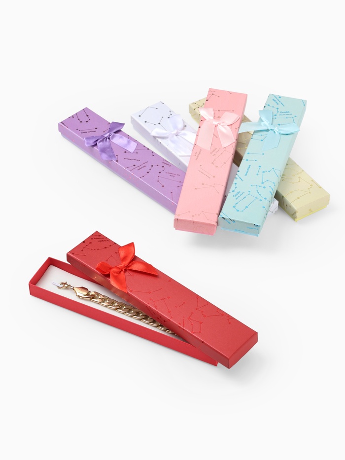 Позвольте представить уникальный набор подарочных коробочек, специально созданных для хранения и демонстрации ваших любимых украшений. Эти очаровательные контейнеры, выполненные в стиле «Созвездия», станут идеальным выбором для упаковки браслетов, цепочек и часов.