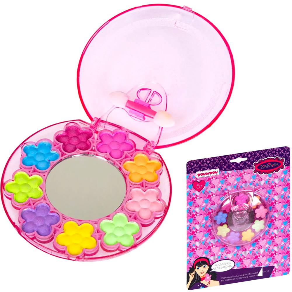 Набор аксессуаров для создания красивого макияжа необходим маленькой моднице! Всё должно быть, как у взрослой леди: губные помады, лаки для ногтей, блески для губ, тени для век, румяна ! Осталось применить творческий подход и создать свой неповторимый образ! Вся косметика гипоаллергенна и безопасна для детей, легко смывается с кожи водой. В набор входят диск с тенями для век (9 оттенков, 6,3г.), зеркальце, аппликатор.