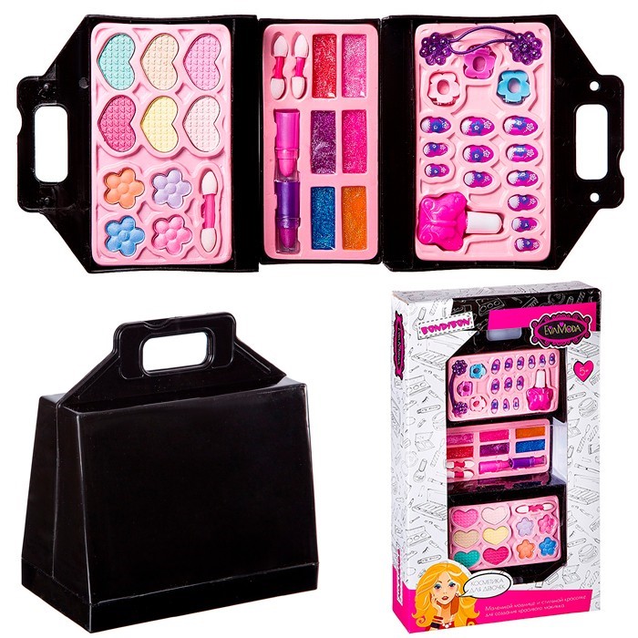 Набор аксессуаров для создания красивого макияжа необходим маленькой моднице Всё должно быть, как у взрослой леди губные помады, лаки для ногтей, блески для губ, тени для век, румяна Осталось применить творческий подход и создать свой неповторимый образ Вся косметика гипоаллергенна и безопасна для детей, легко смывается с кожи водой.