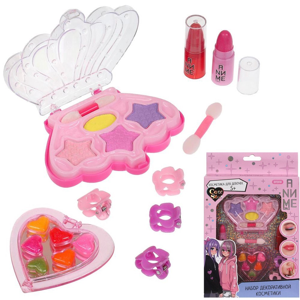 Набор косметики: тени д/век, блеск д/губ, помада, заколки Cool Star 114384-AG-TTG