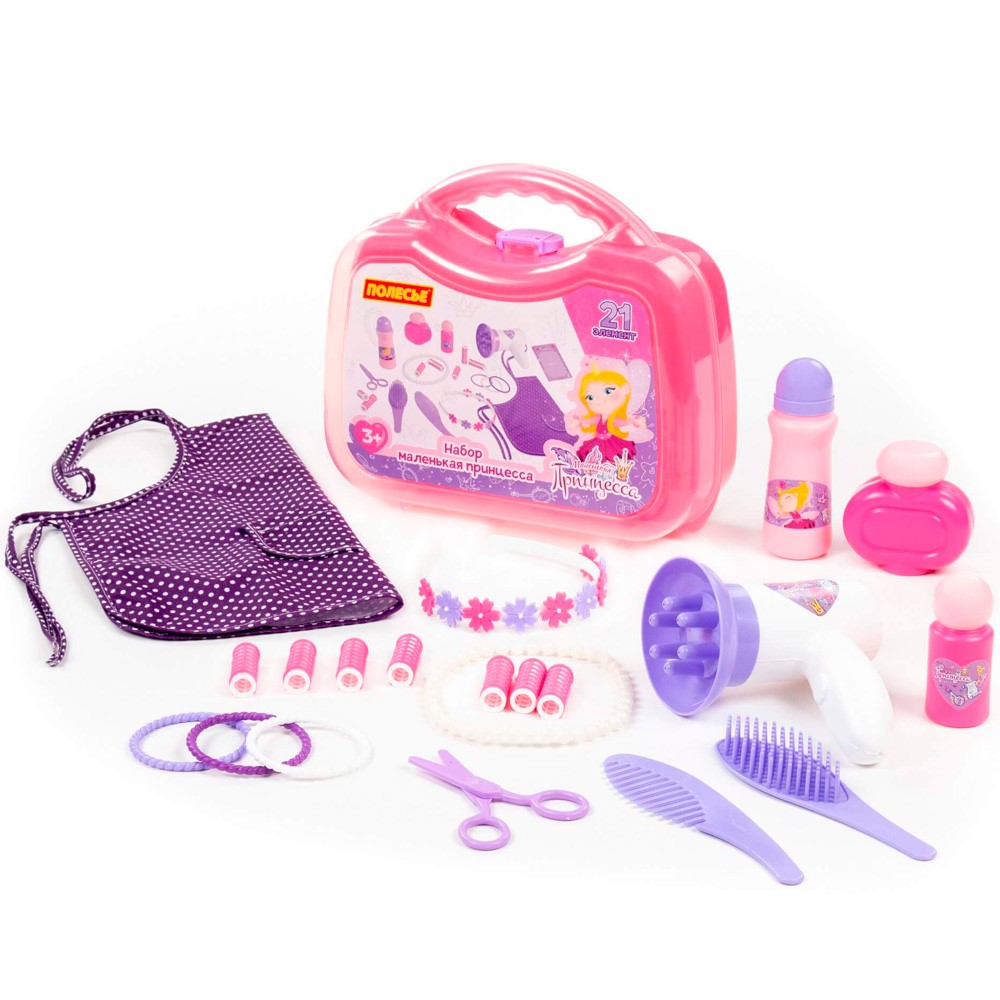 Занимательный игровой набор «Маленькая принцесса» позволит девочкам открыть собственный салон красоты или парикмахерскую. В набор входит все для проведения экспериментов над внешним обликом своих игрушек и кукол.