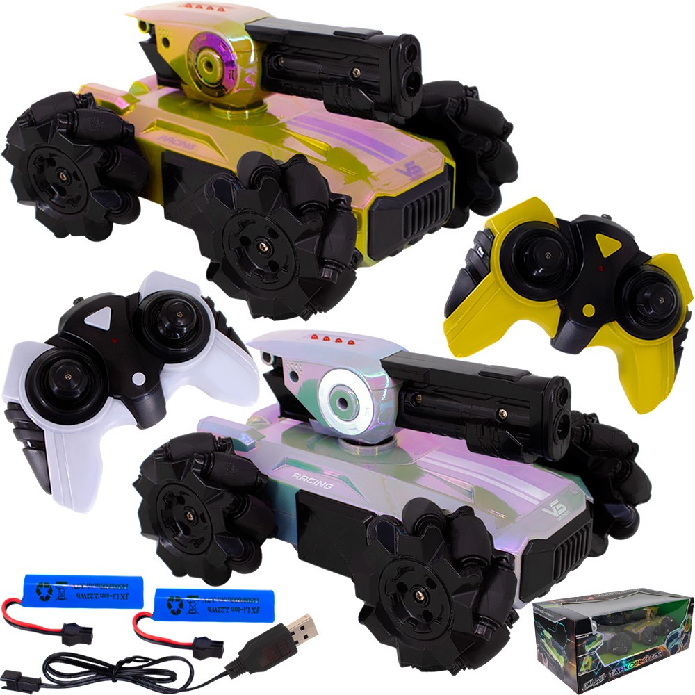 Комплектация: танк - 2 шт, пульт управления - 2 шт, аккумулятор - 2 шт, кабель для зарядки - 2 шт