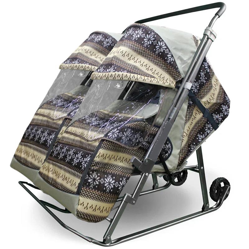 Функциональные санки-коляска - прекрасный транспорт для двойни в зимний период.