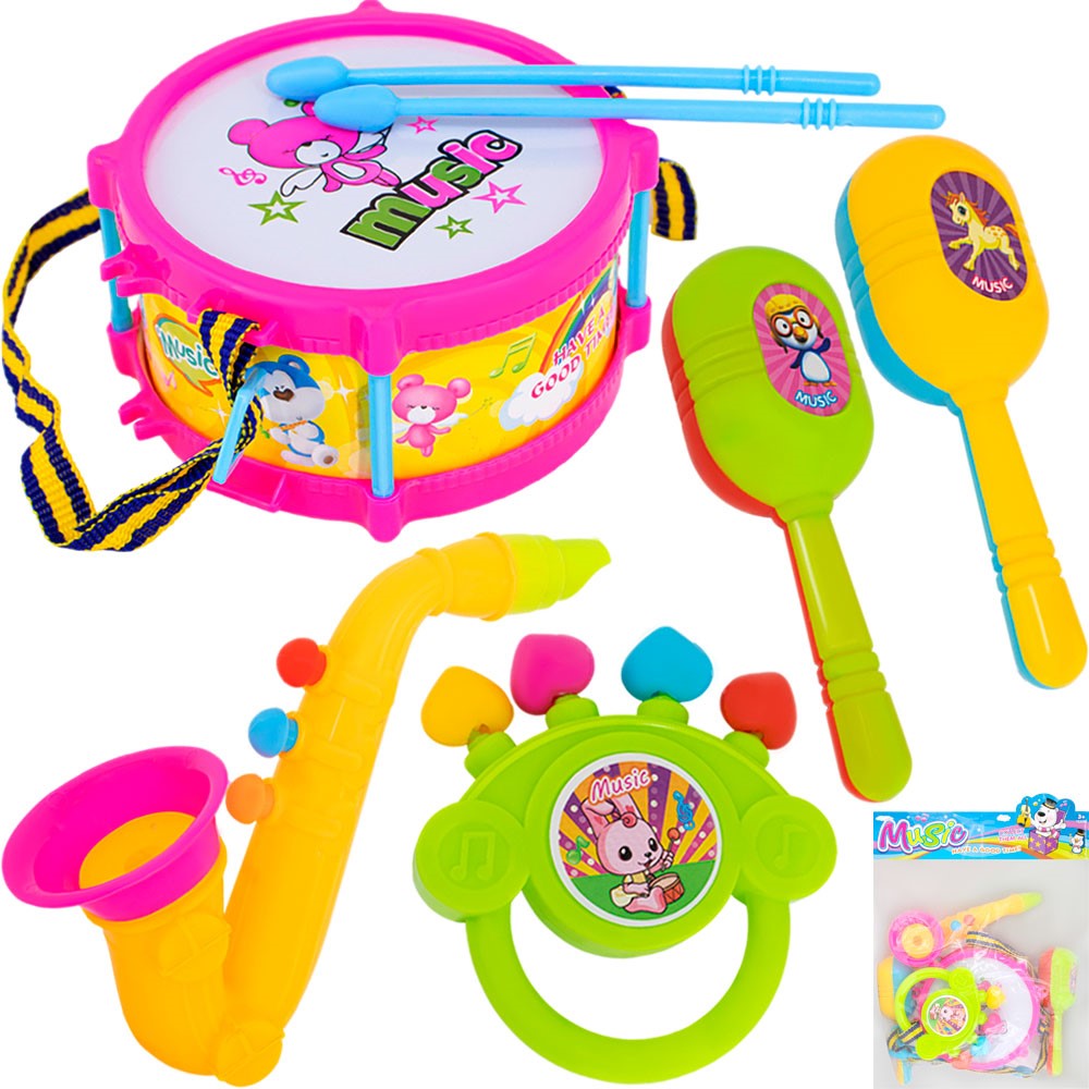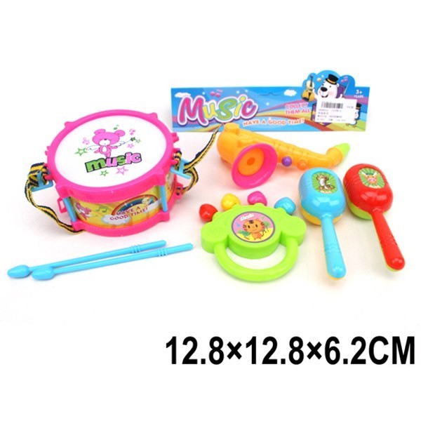 Комплектация: барабан - 1 шт, палочки - 2 шт, погремушки - 3 шт, саксафон - 1 шт