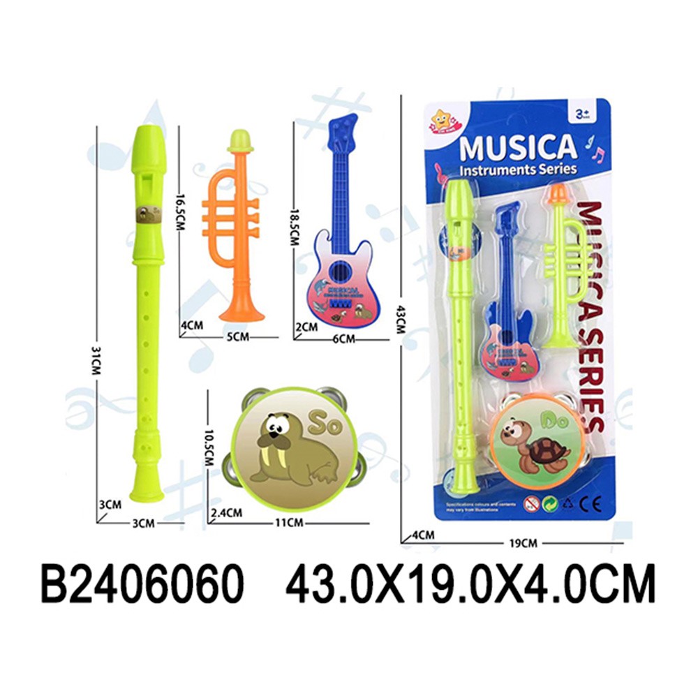 Комплектация: бубен - 1 шт., флейта - 1 шт., дудочка - 1 шт., гитара - 1 шт.