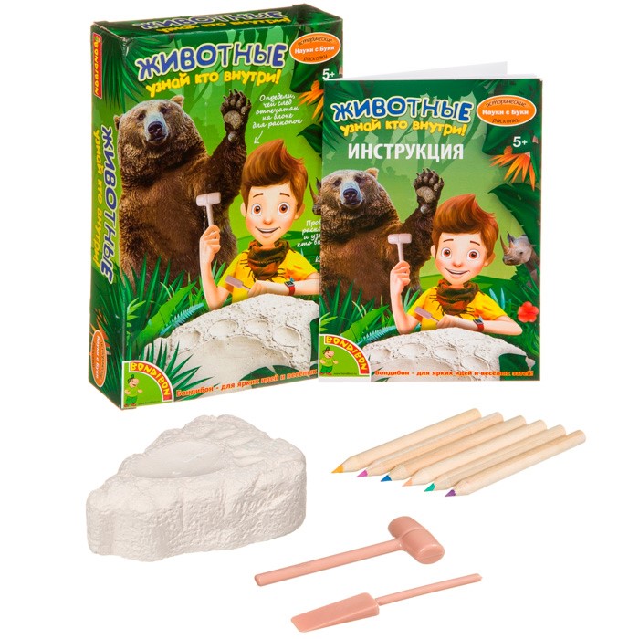 Набор Науки с Буки Bondibon "юный археолог" проводим раскопки Животный мир. Узнай кто внутри! ВВ4119