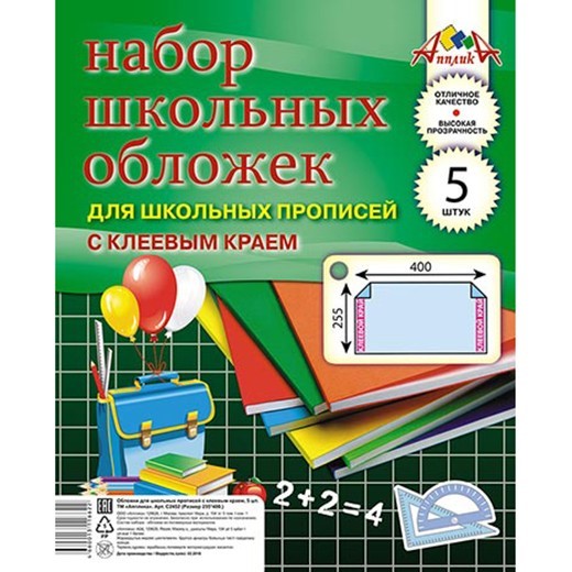Набор обложек д/прописей 5шт 110 мкм 255х400мм С2452 клеевой край