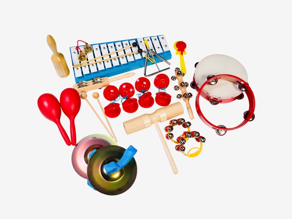 Перкуссионный набор подходит детям в качестве первого знакомства с музыкальными инструментами. Упакован в компактную сумку и состоит из 17-ти предметов: