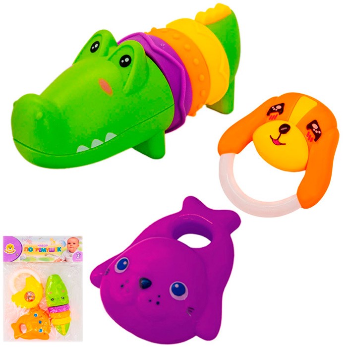 Комплектация: крокодильчик (6 х 13,5 см) - 1 шт., погремушка №1 (9,5 х 8,5 см) - 1 шт., погремушка №2 (10 х 8,5 см) - 1 шт.