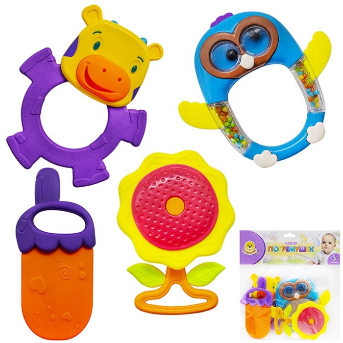 Комплектация: погремушка №1 (11 х 9,5 см) - 1 шт., погремушка №2 (11,5 х 5 см) - 1 шт., погремушка №3 (7 х 10 см) - 1 шт., погремушка №4 (13 х 12 см) - 1 шт.