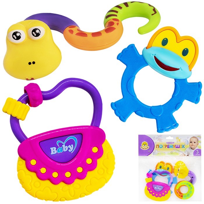• Некоторые элементы погремушек выполнены из мягких полимерных материалов и могут служить прорезывателями.