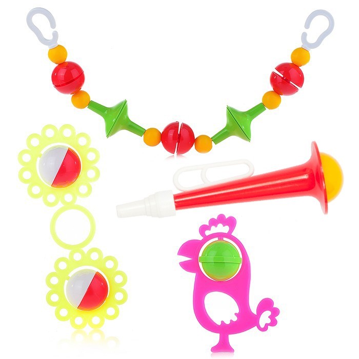 Комплектация: погремушка – 2 шт., подвеска – 1 шт., музыкальная игрушка «Рожок» – 1 шт.