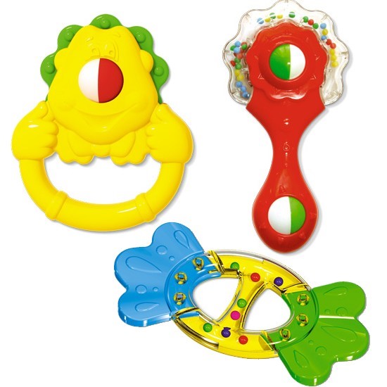 Игрушки оказывают огромное влияние на физическое, умственное, эмоциональное развитие маленьких детей, способствуют развитию речи и зрения. Малыш, лежа в кроватке, разглядывает игрушку, концентрирует на ней внимание и проявляет интерес, начинает тянуться за погремушкой и совершает первые движения, учится фокусировать внимание на ярких цветах и начинает различать их. Набор содержит разноцветные и функциональные игрушки, которые своими яркими цветами привлекут и надолго удержат внимание малыша