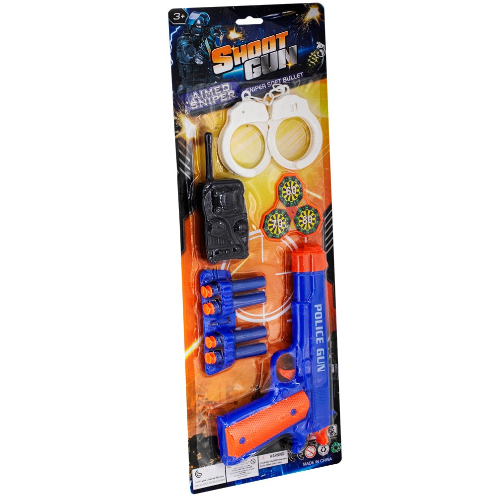 Комплектация: рация - 1 шт., пистолет - 1 шт., пуля - 4 шт., держатель пуль - 1 шт., мишень - 1 шт., наручники - 1 шт.