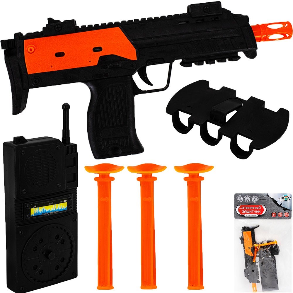 Комплектация: пистолет-пулемёт – 1 шт., пули с присосками – 3 шт., рация – 1 шт., патронташ – 1 шт.