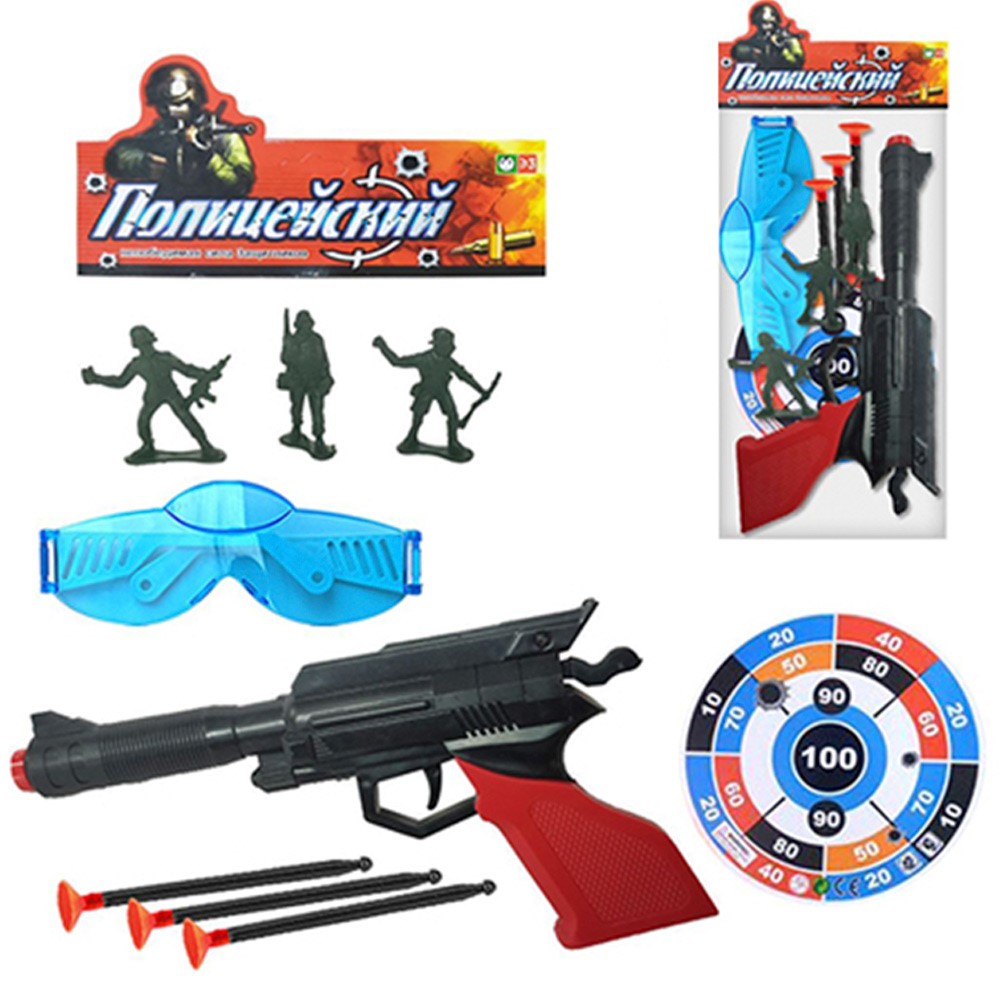 Комплектация: оружие - 1 шт, пули - 3 шт, очки - 1 шт, мишень - 1 шт, фигурки - 3 шт