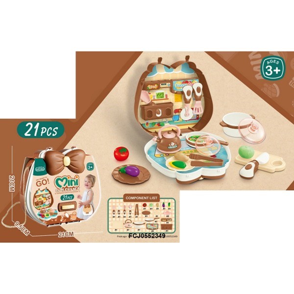 - дополняющие игровой набор аксессуары: набор посуды и продуктов;