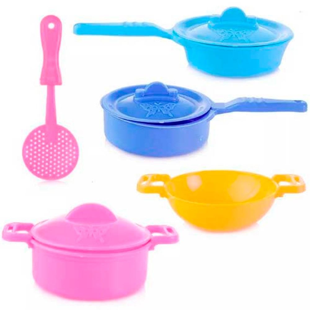 Размер изделия: кастрюля 7,7 х 4 см, сковорода 8,5 х 2,5 см, сотейник 8,5 х 2,5 см, шумовка 12 см