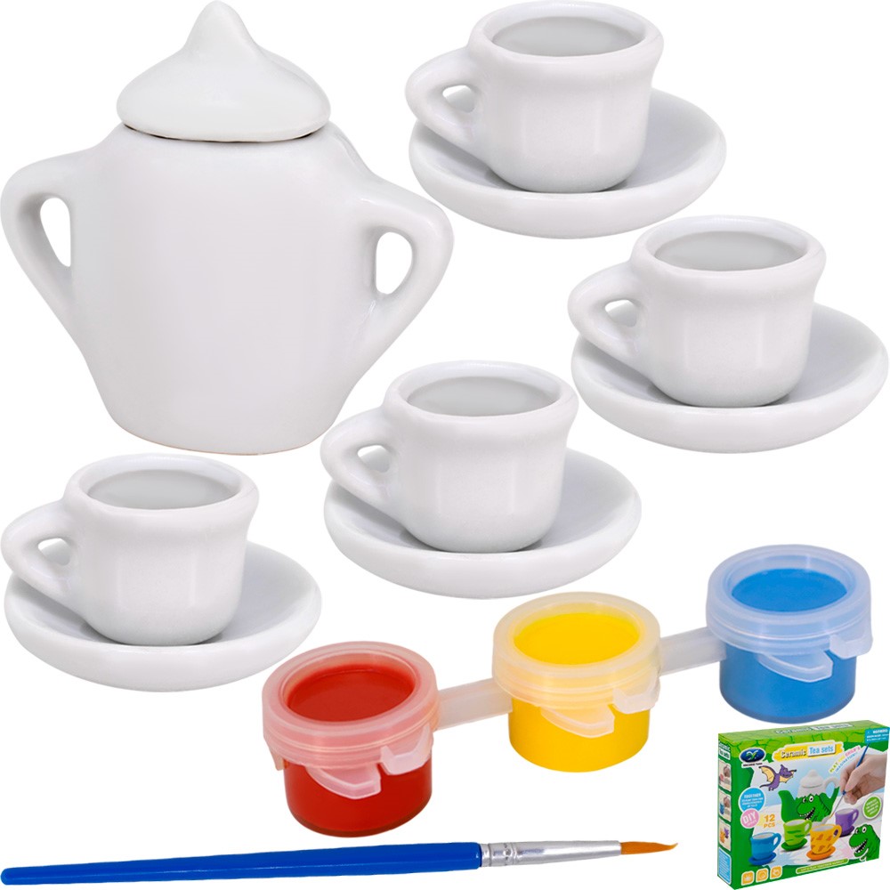 Комплектация: 1 чайник/кофейник, 4 чашки, 4 блюдца, 1 кисть, краски - 6 цв.