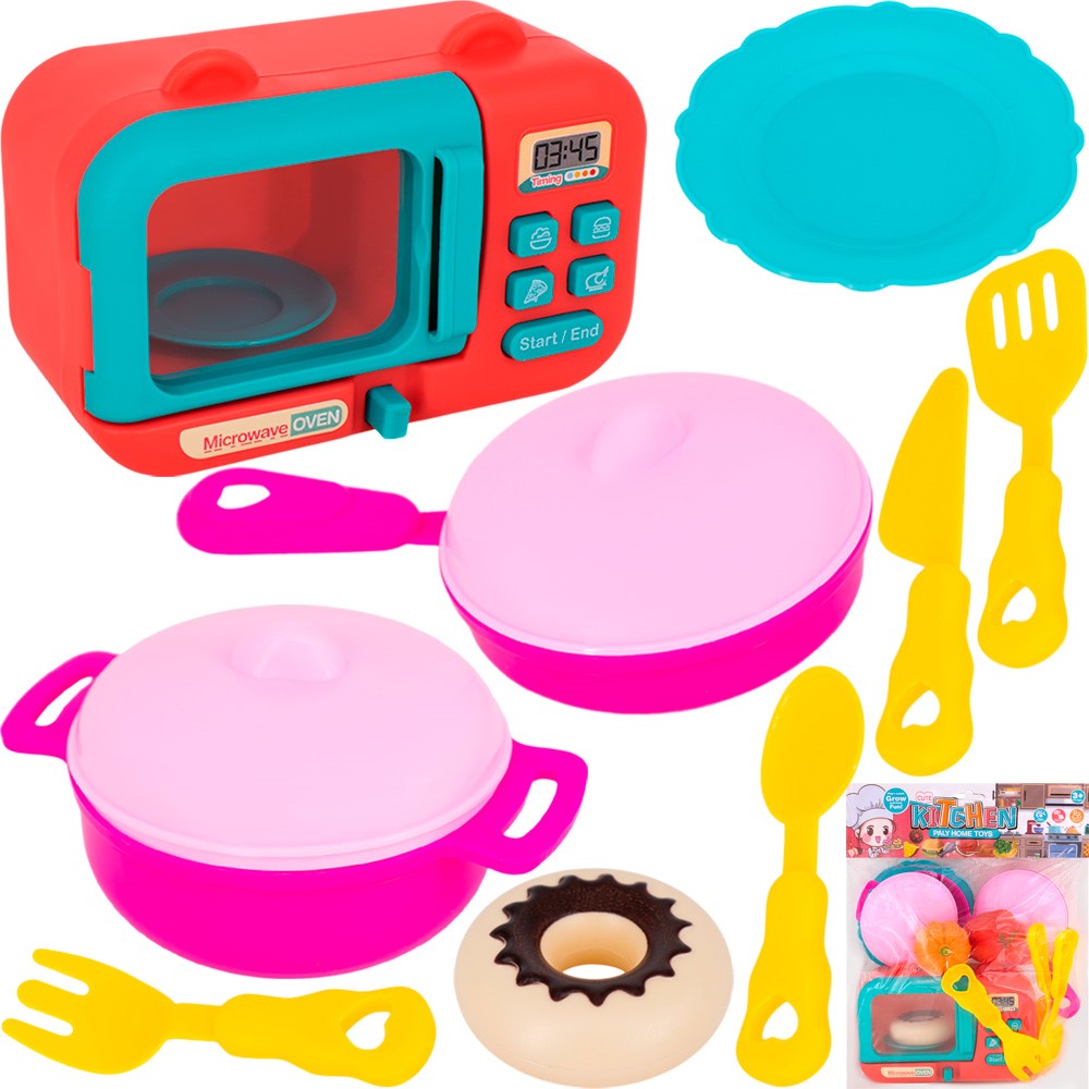 В этом ярком комплекте малышка найдет не только всю необходимую для приготовления угощения куклам утварь, но и продукты, из которых и будет готовить свои блюда.