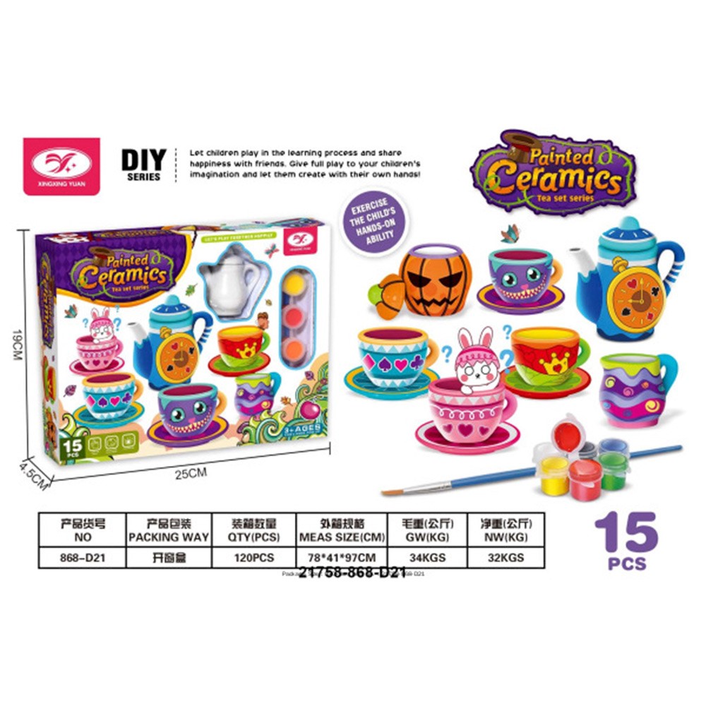Комплектация: молочник - 1 шт., кофейник - 1 шт., крышка - 2 шт., чашка - 4 шт., блюдце - 4 шт., сахарница - 1 шт., кисть - 1 шт., краски - 6 шт.